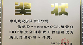 中慶建設QC成果喜獲全國市政工程優秀QC小組二等獎