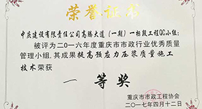 ?近日,在重慶市2016年度市政行業優秀QC小組成果評選會上,由中慶建設重慶分公司申報的《提高預應力壓漿質量施工技術》成果榮獲一等獎。